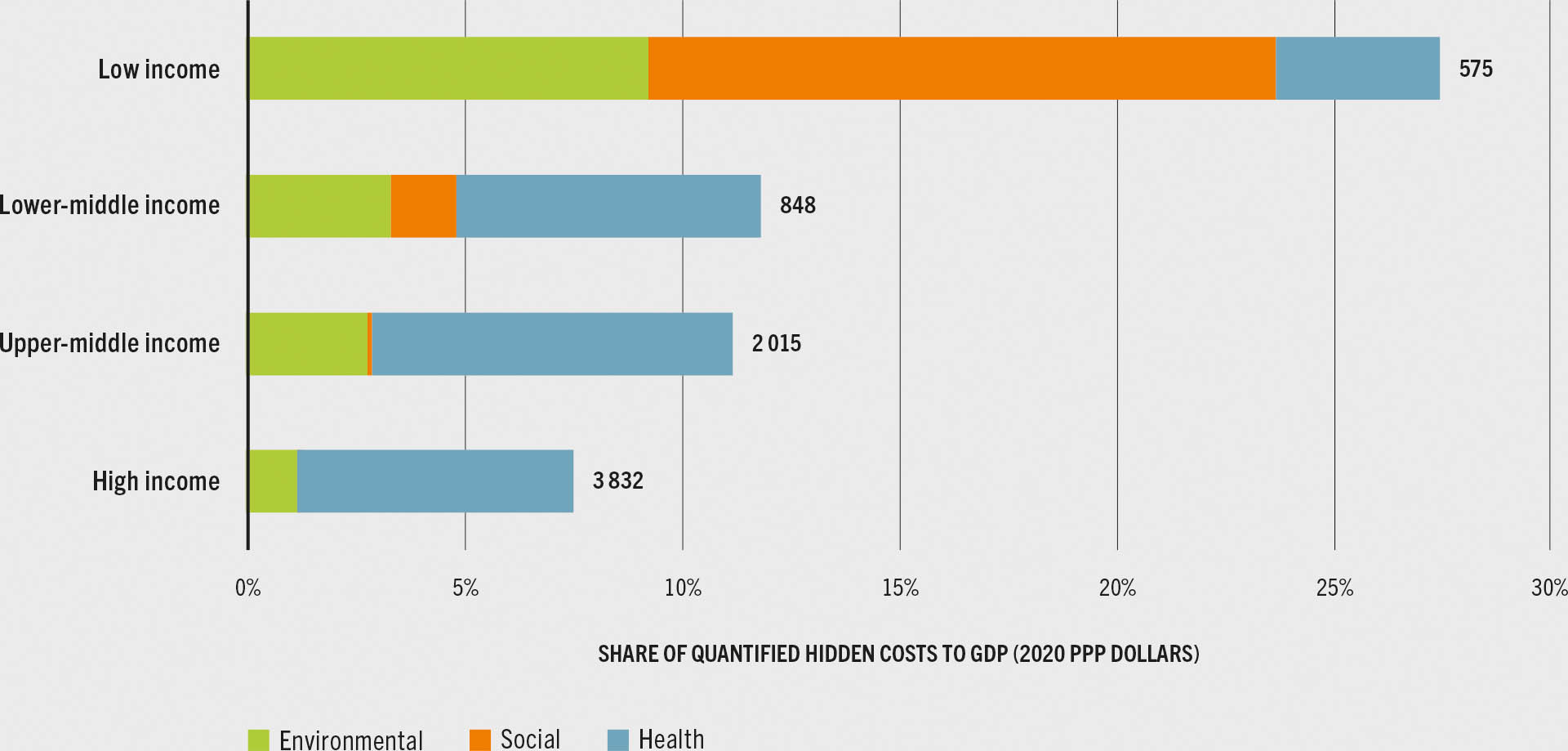 High absolute costs of consumption in countries with high labour productivity does not imply priority. SOFA 2023 discusses the unaccounted liabilities of food production and consumption on a percentage GDP basis. Figure 8 in SOFA https://www.fao.org/3/cc7724en/online/state-of-food-and-agriculture-2023/hidden-costs-income-group.html#fig8 ….the relative burden for LIC is 27% of GDP PPP and MIC it is ~12% of GDP PPP, compared to 7.5% for HIC.